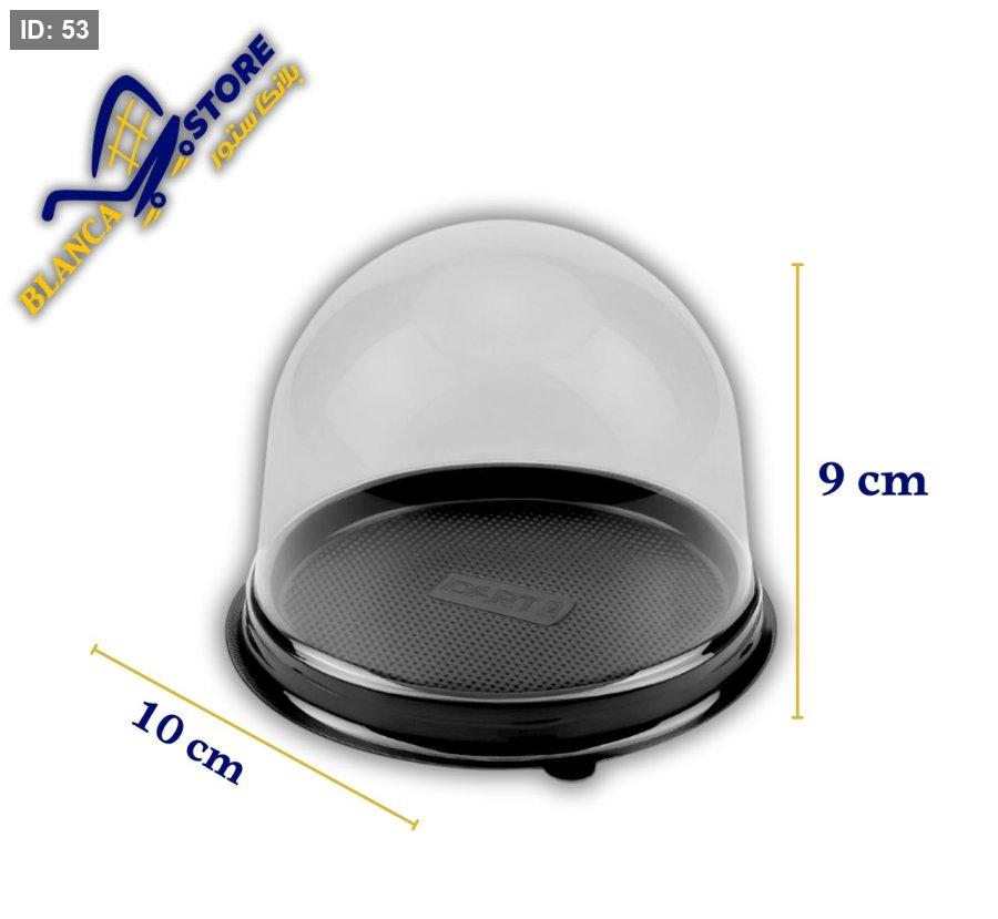 علبة بلاستيكية شفافة دائرية الشكل بغطاء قبة وقاعدة سوداء، مصممة خصيصًا لتغليف وعرض وحماية الكيك متوفرة في ربطة تحتوي على 25 علبة